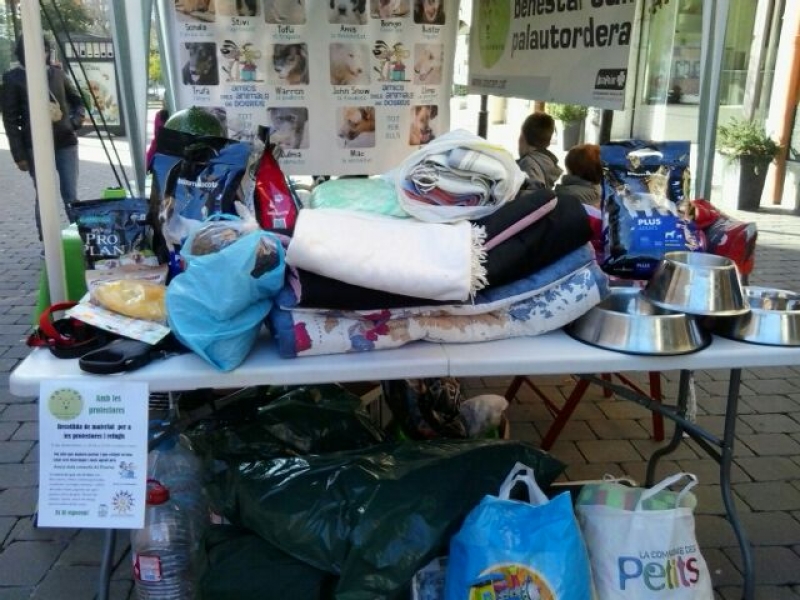 Llits canins i felins, mantes, tovalloles, corretges, arnesos, collars, joguines, menjar en llaunes, pinso, i moltes coses més ho podran gaudir els gossos i gats d’aquesta protectora, que en el seu nom i en el nostre, moltes gràcies per tot el que vau portar i el suport que ens vau donar des de bon matí fins a última hora del migdia!